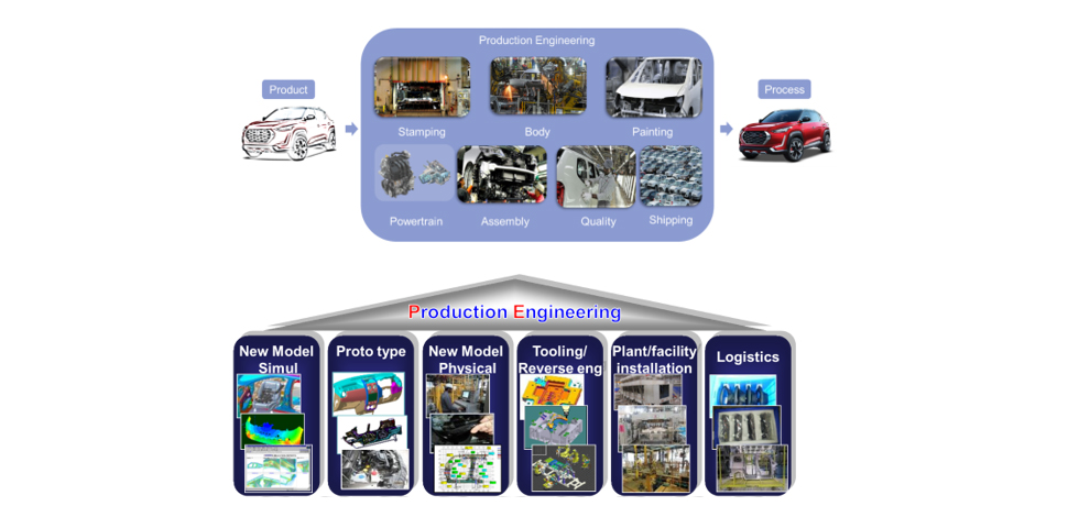 Around 3700 Engineers contribute for Global Vehicle Development including India Market for Renault and Nissan Brands. Activities can be broadly classified as “Vehicle Design & Development”, Production Engineering” and “Research & Advance Engineering”.